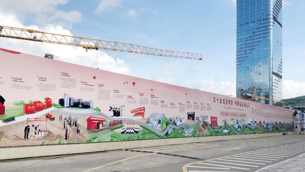 “时空之旅打卡点”以背景板、相框为主搭配素材,以1985年公司成立、1992年公司搬迁、2020年公司35周年庆为时间节点,融入蛇口厂房、彩田园区一期建筑及bv伟德国际体育官方网站城未来效果图的剪影,并利用空间感营造出时空隧道的立体效果,让大家跨越时空隧道,看见bv伟德国际体育官方网站35年的发展变迁。