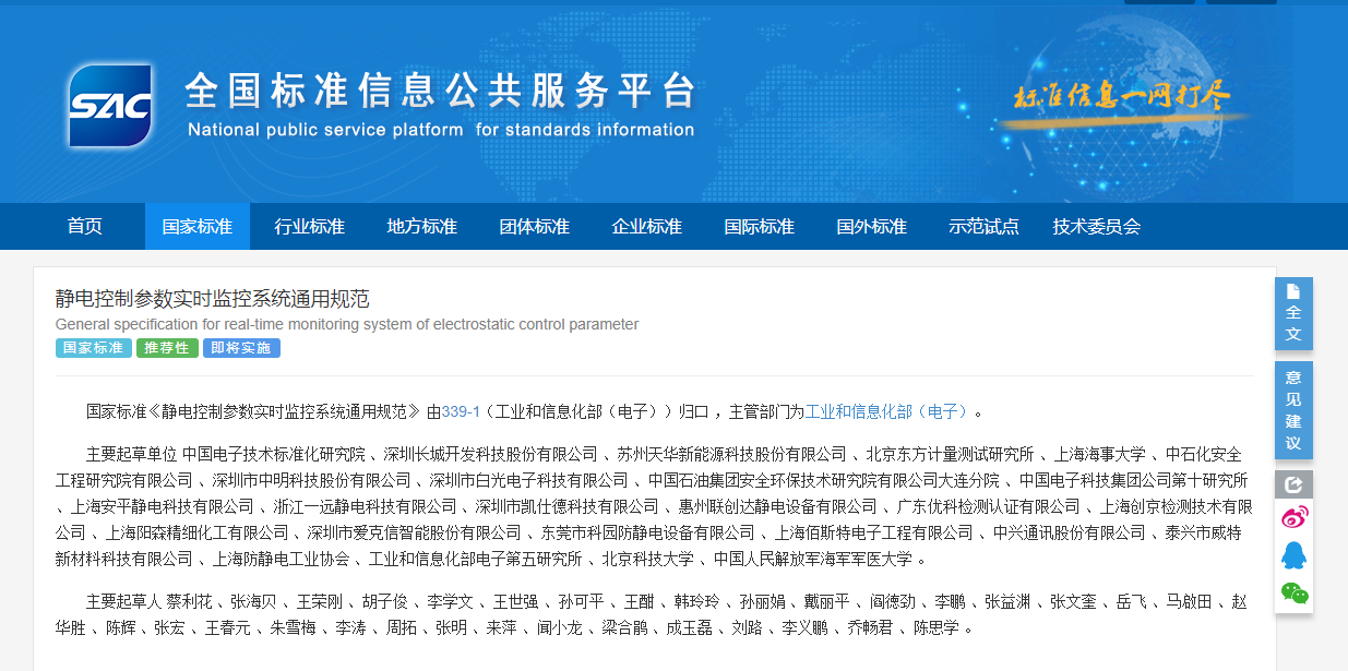 近期,由工业和信息化部立项、中国电子技术标准化研究院归口管理的国家标准GB/T 44787—2024《静电控制参数实时监控系统通用规范》正式发布,将于2025年5月1日起实施。作为我国首个自主制定的静电控制参数实时监控领域国家标准,该标准填补了国内外技术标准空白,指引相关产业公平、科学、良性发展。