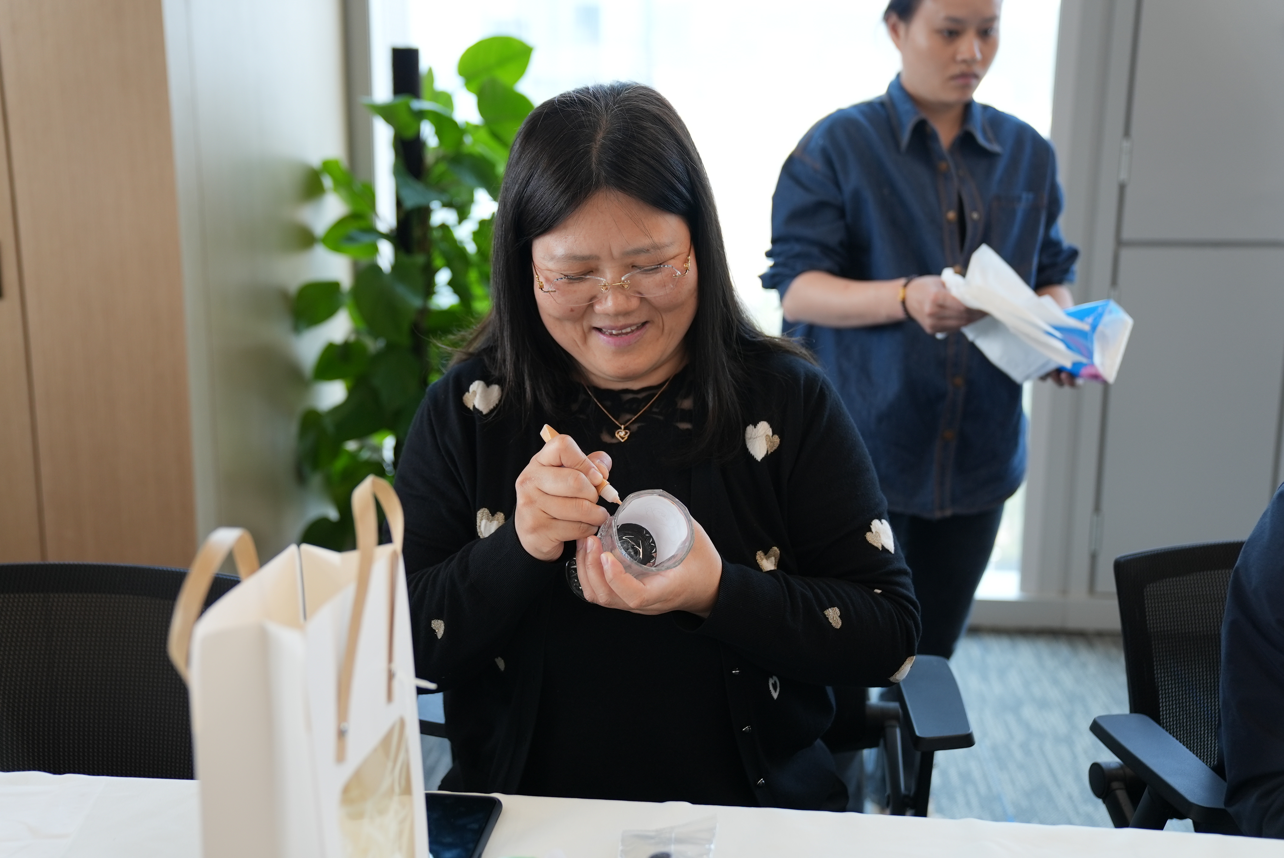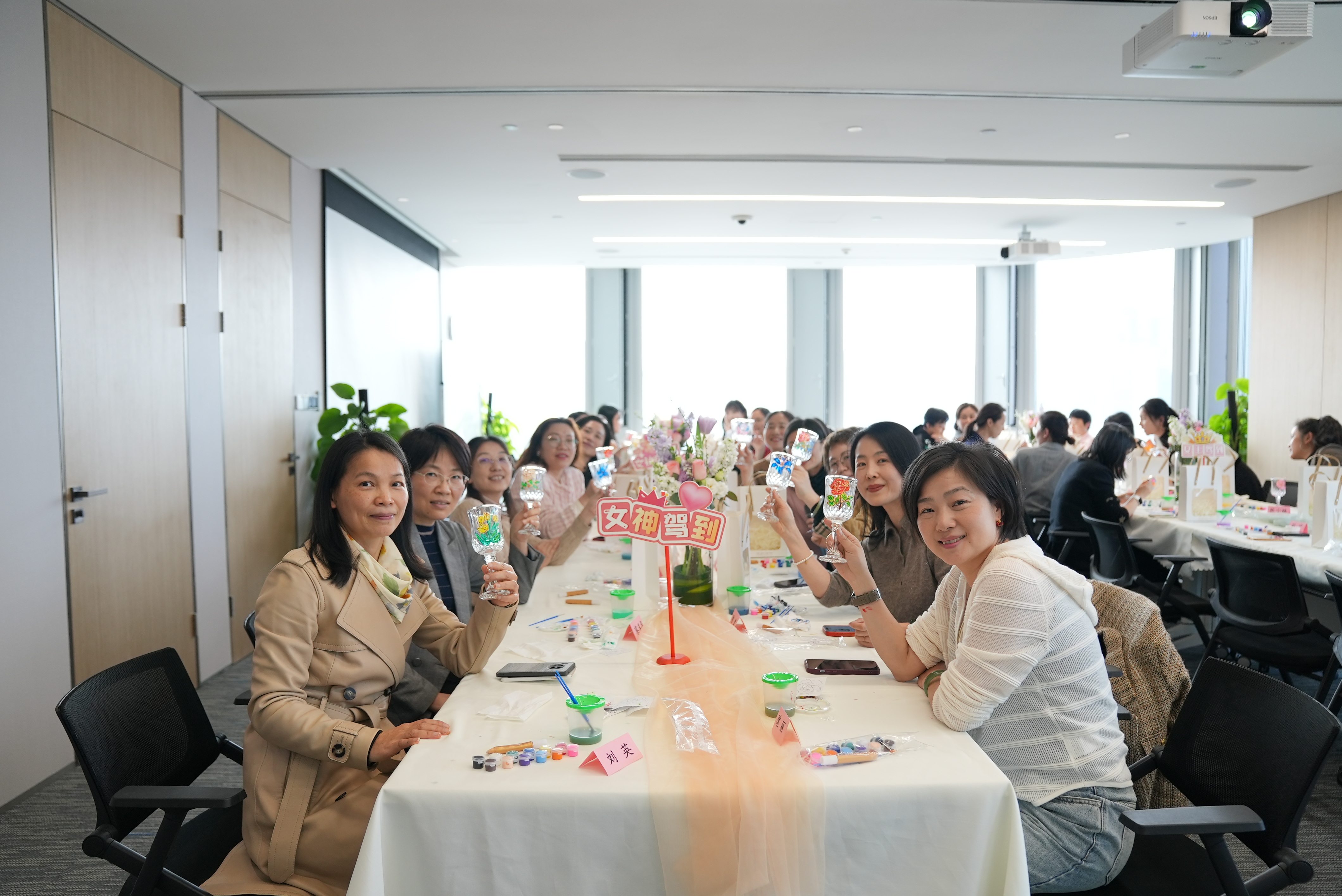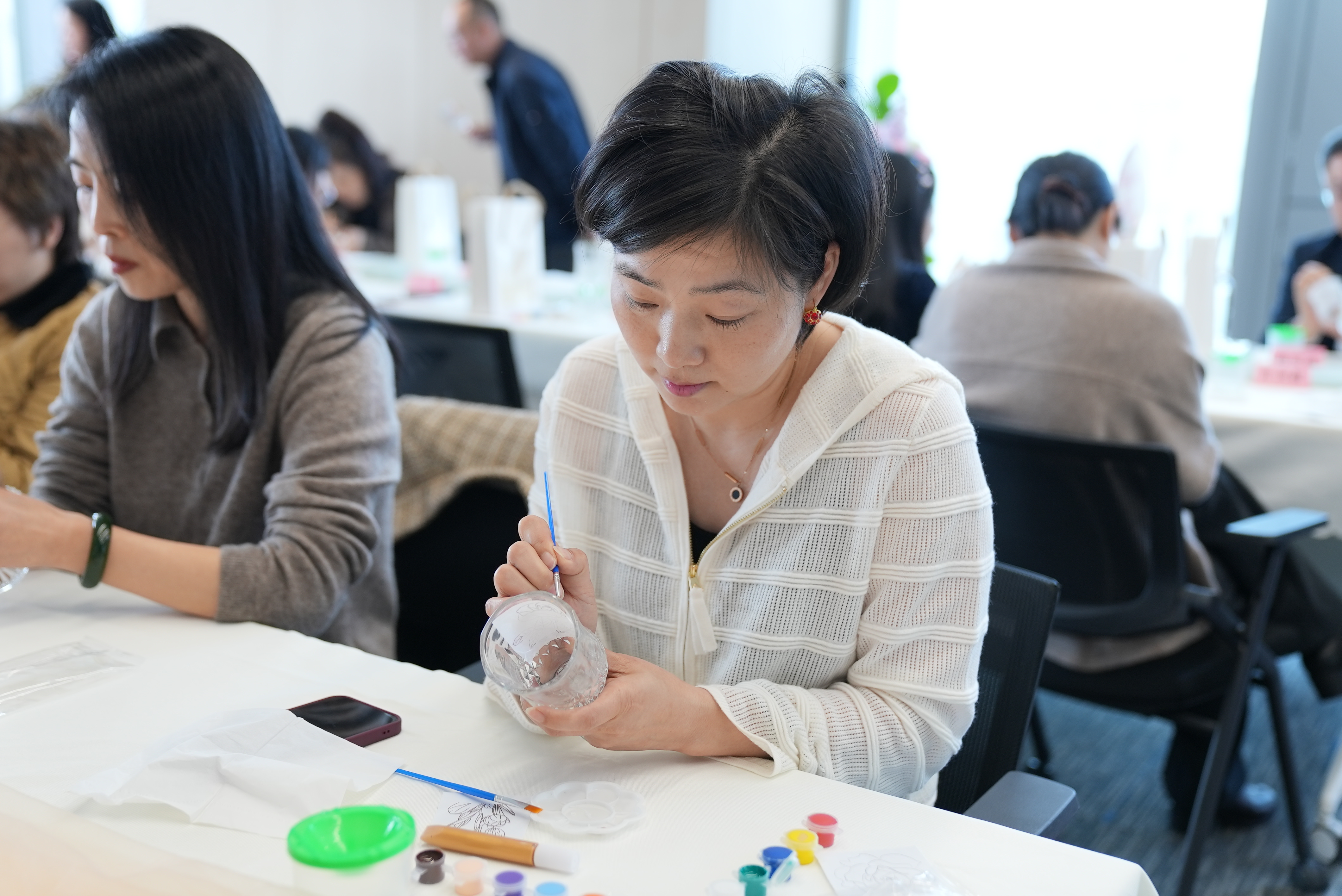 创作过程中,大家充分发挥想象力,将春天的色彩和元素融入作品中。一个个晶莹剔透的玻璃杯,经过女神们的巧手一绘,瞬间变成了一件件精致的艺术品,朵朵娇艳的玫瑰、洁白的百合、华美的郁金香呼之欲出,每件作品都充满了独特的风格和魅力。女神们享受手绘之美,度过了一个温馨快乐的节日。