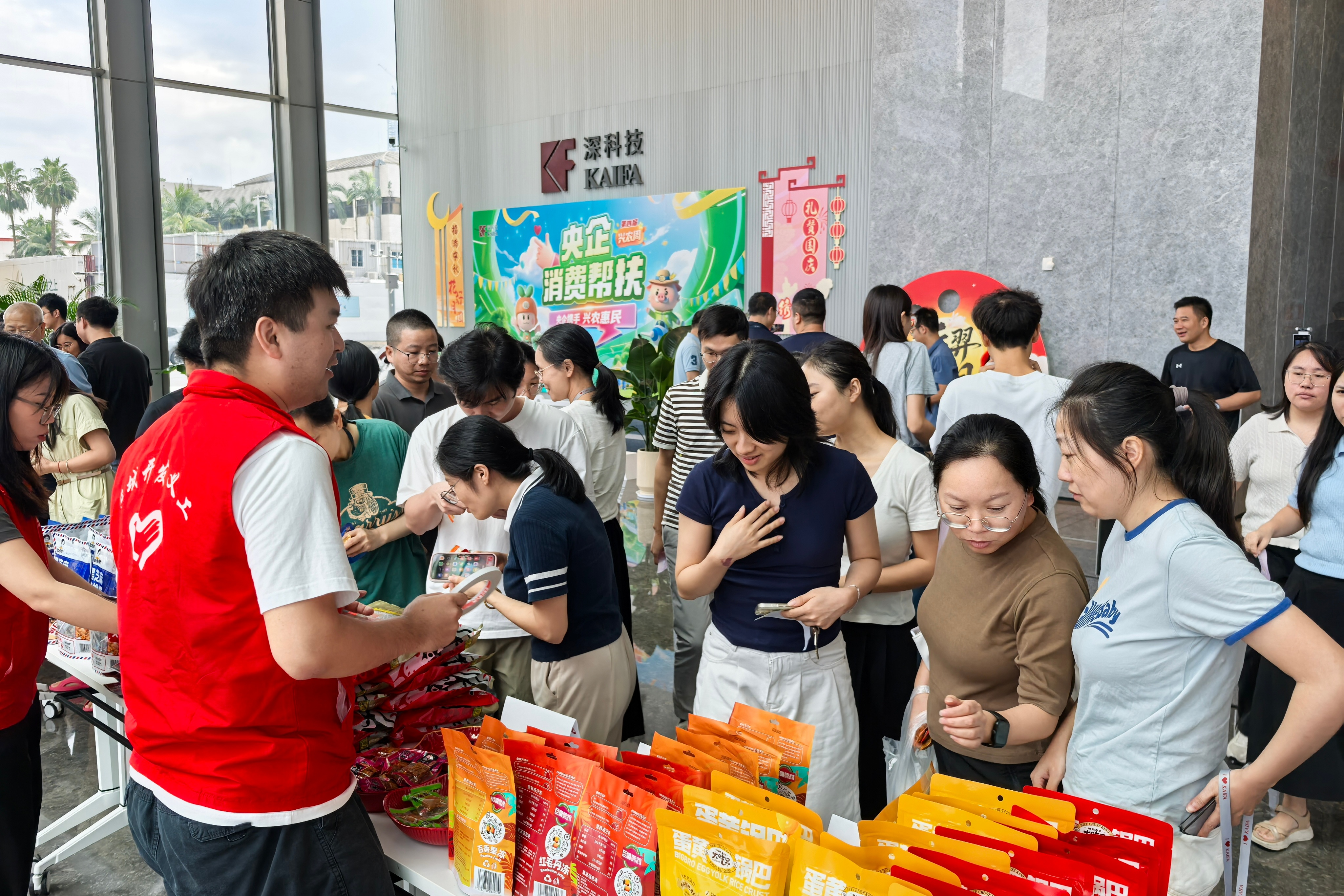 秋分时节,桂香盈袖,恰逢中秋团圆意浓,国庆华章将至。9月23日,在bv伟德国际体育官方网站党委的大力支持下,bv伟德国际体育官方网站工会在bv伟德国际体育官方网站城C座大堂组织开展了第四届“央企消费帮扶兴农周”美食品鉴活动。以美食为纽带,以帮扶为桥梁,本次活动将佳节温情与乡村振兴使命交融,让来自帮扶地区的淳朴风味化作舌尖上的暖流,为乡村振兴注入鲜活能量。